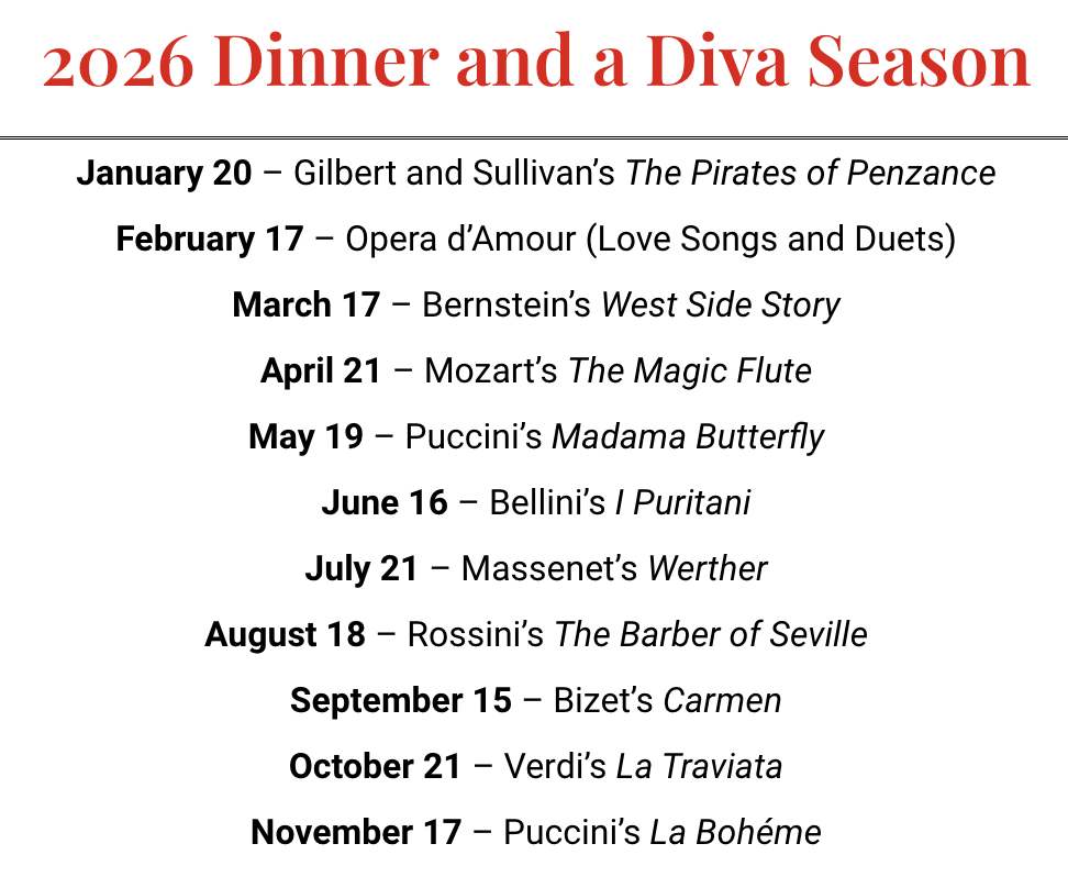 Join us and the Capitol City Opera Company, on Tuesday, April 21st, for Dinner and a Diva: a night of delicious food and performances from Mozart’s The Magic Flute.