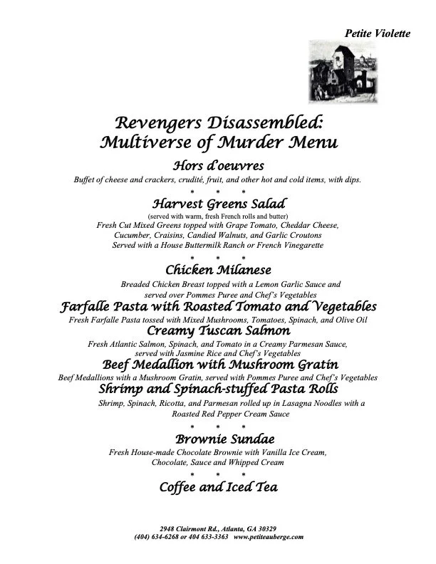 Get ready to assemble for the most outrageous dinner party yet! Mystery comics presents: “Revengers Disassembled: Multiverse of Murder”.